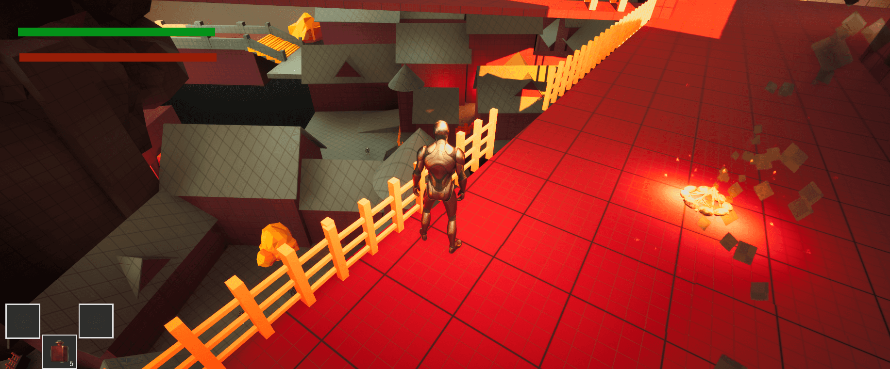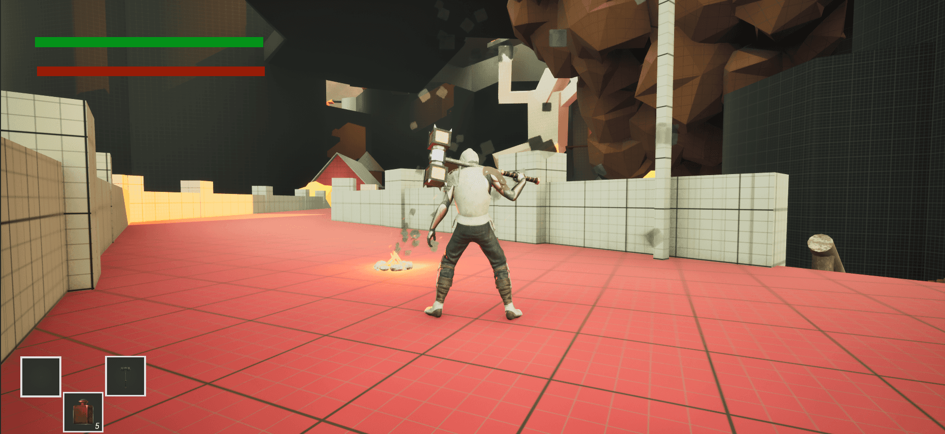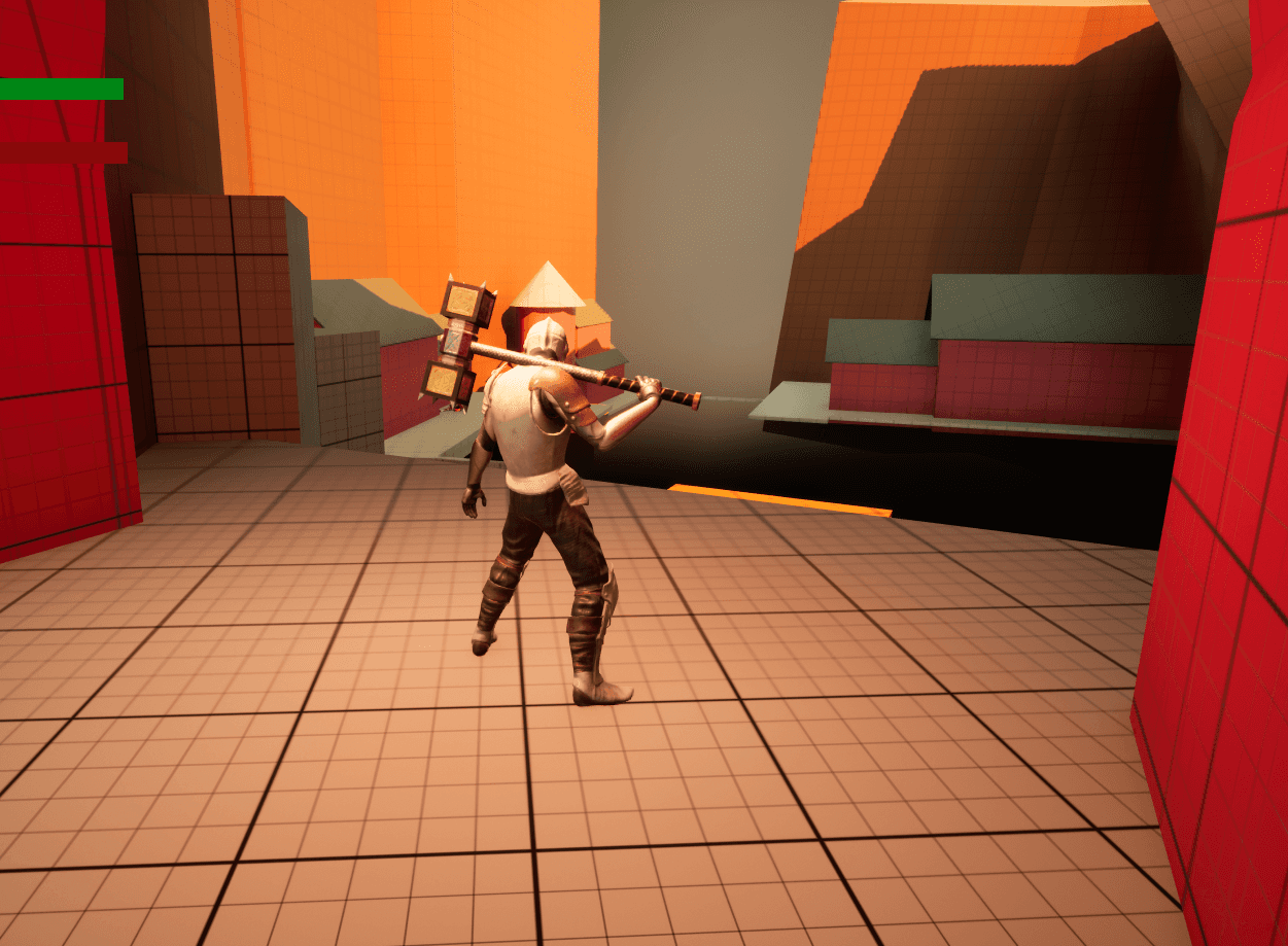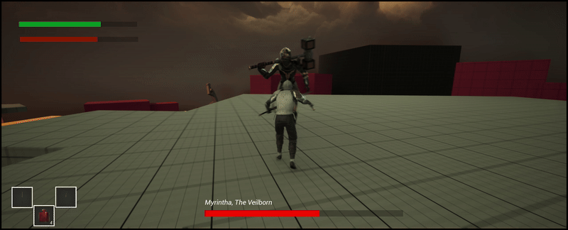 I built several core gameplay systems in Blueprint, starting with a Souls-like player controller featuring slow, grounded movement with no jump. I also created three types of enemy AI: a basic enemy, a mini-boss, and a main boss. Additional systems include a health-potion healing mechanic, multiple weapon pickups, and a functional campfire that acts as both a save point and a respawn location.