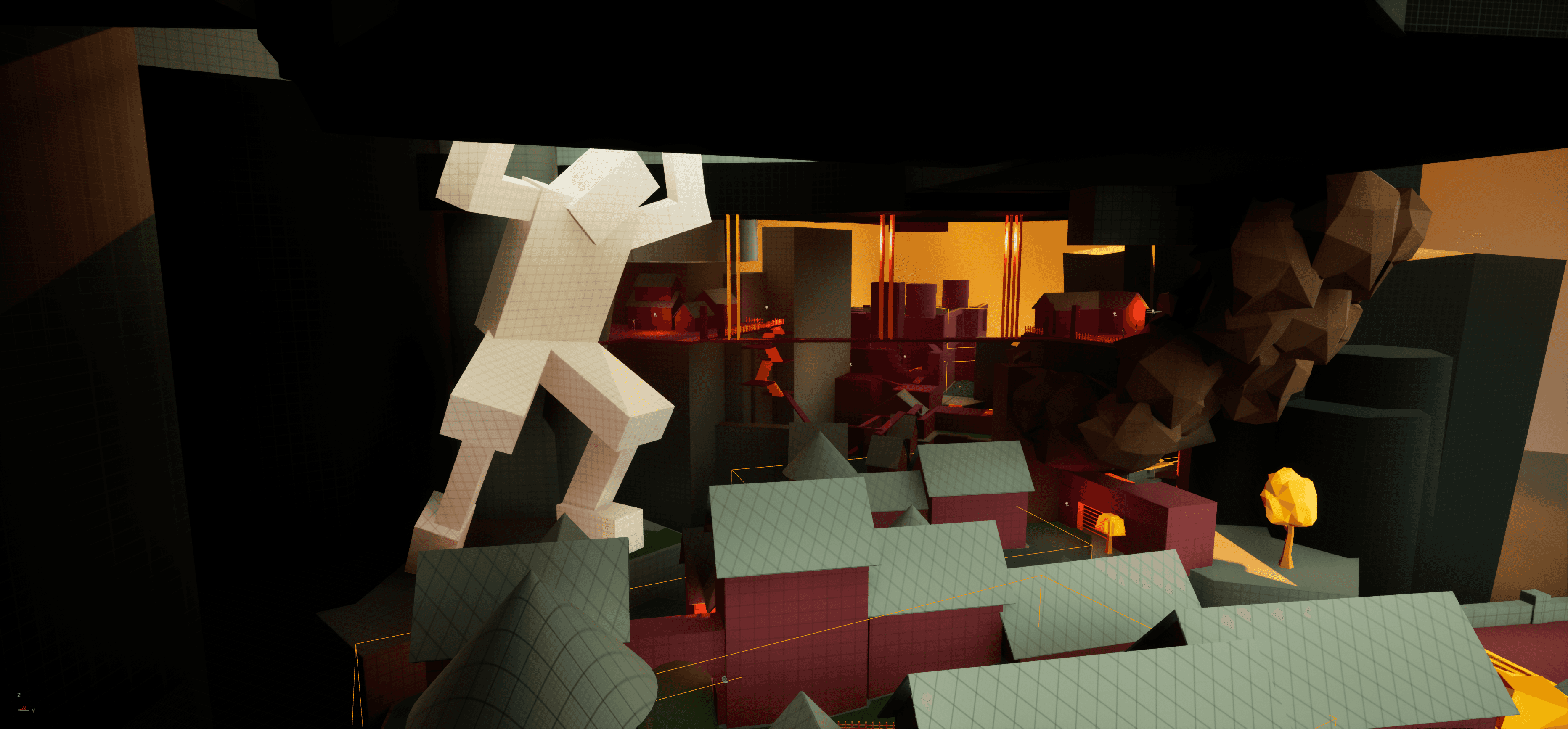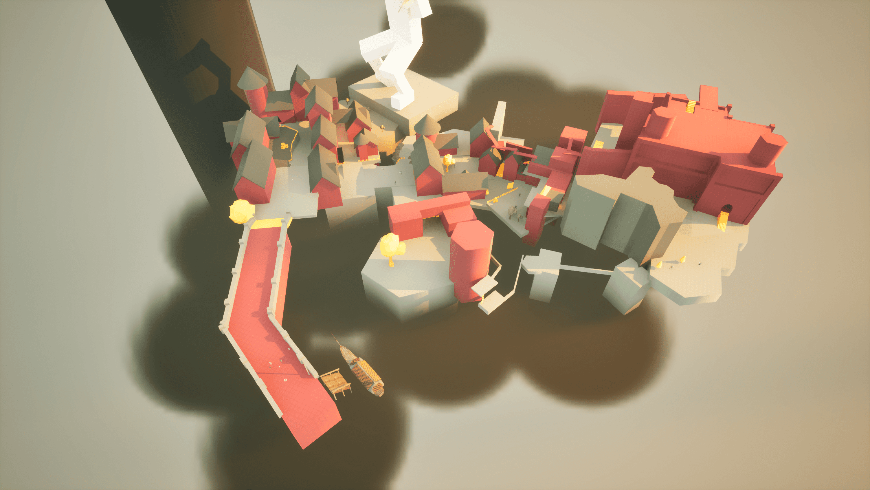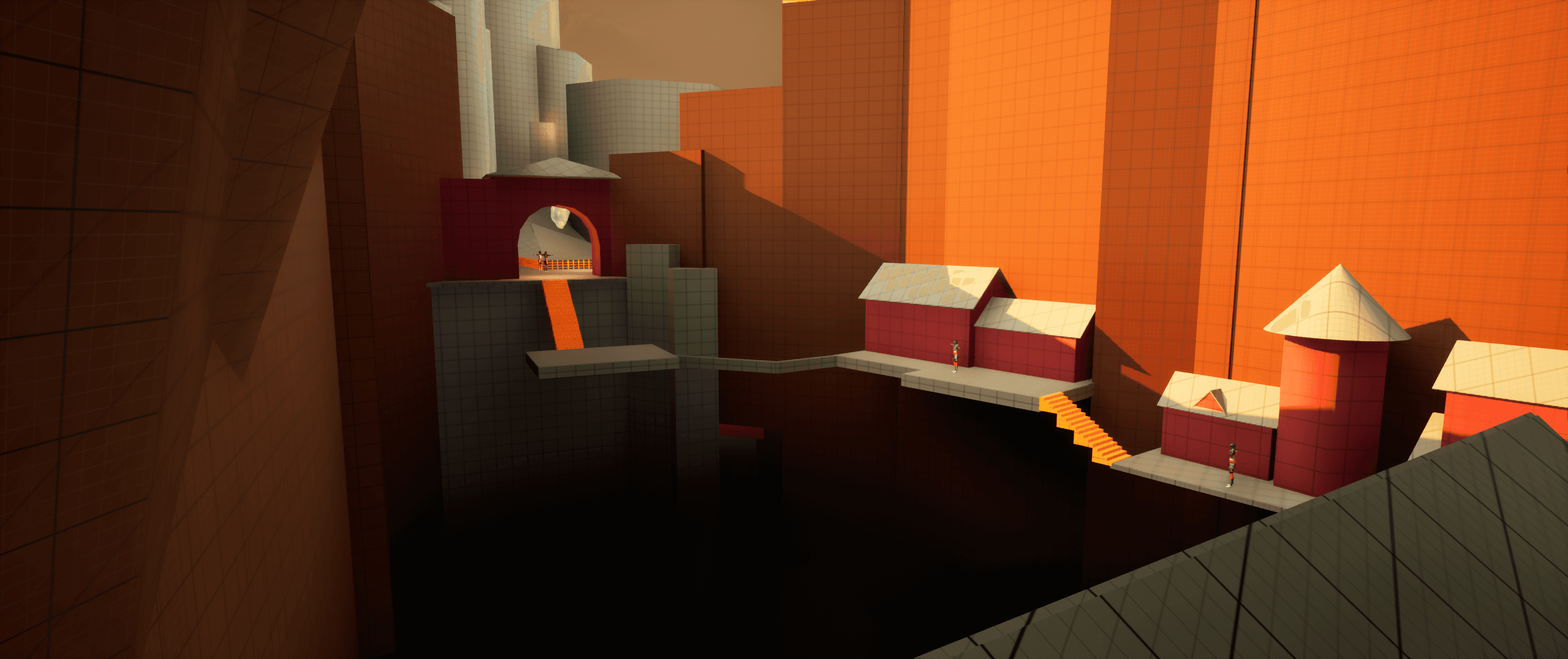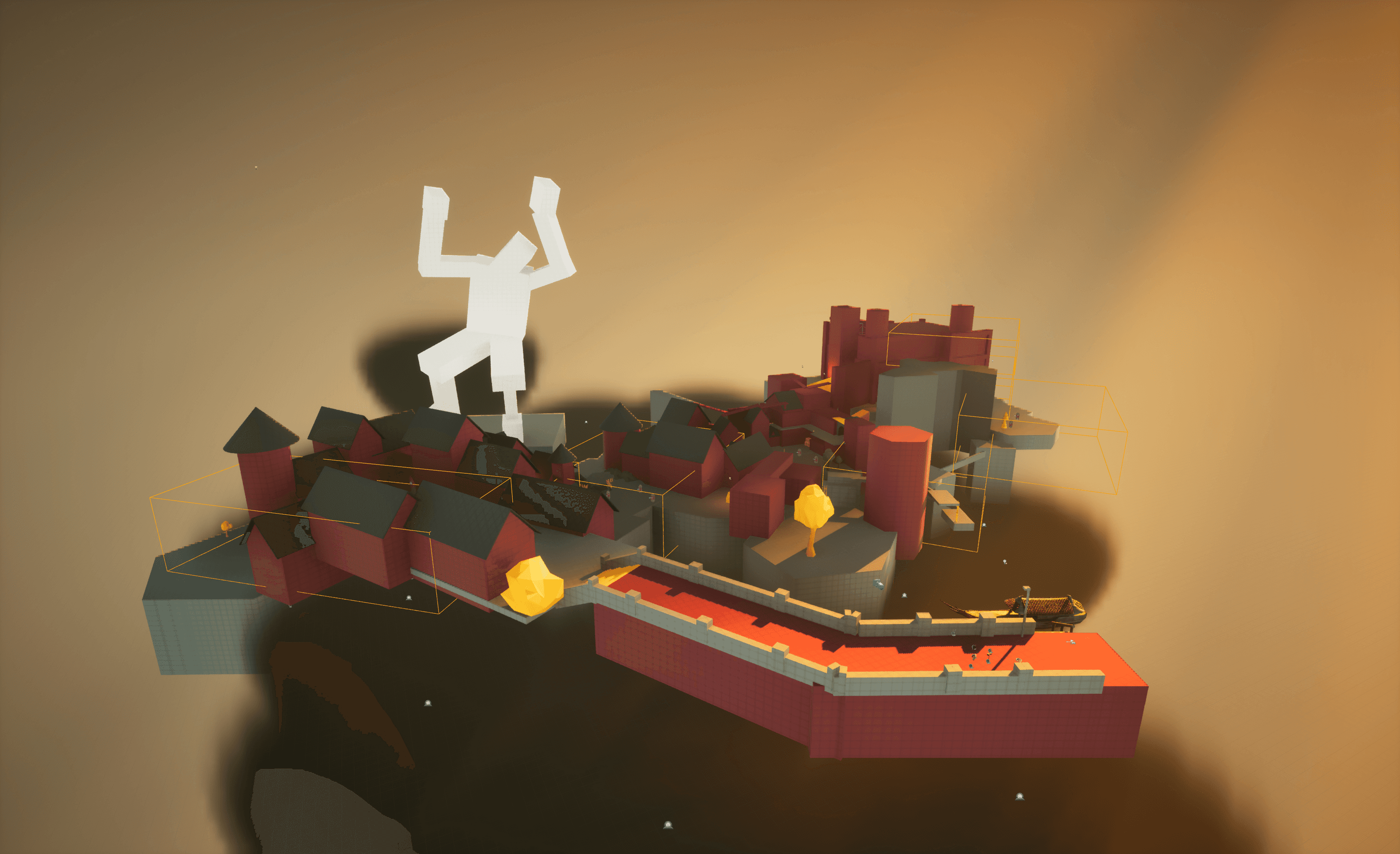 I built the level in three main sections and tried to make verticality a big part of the experience. I wanted players to constantly spot interesting views, notice places they might reach later, and feel pulled toward exploring. Some routes involve a bit of risky platforming, but I like giving players the option to take those chances and earn something extra for going off the main path.