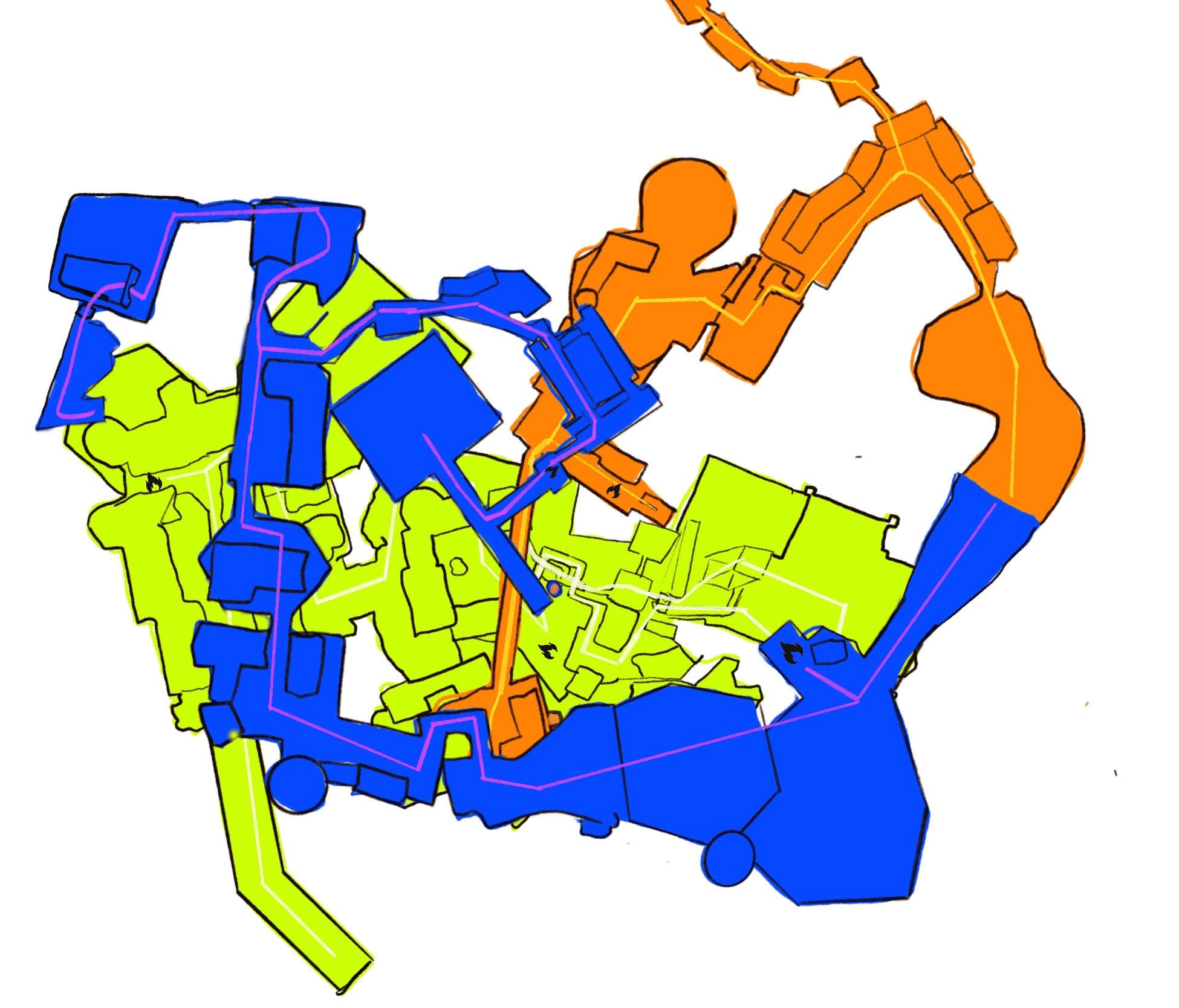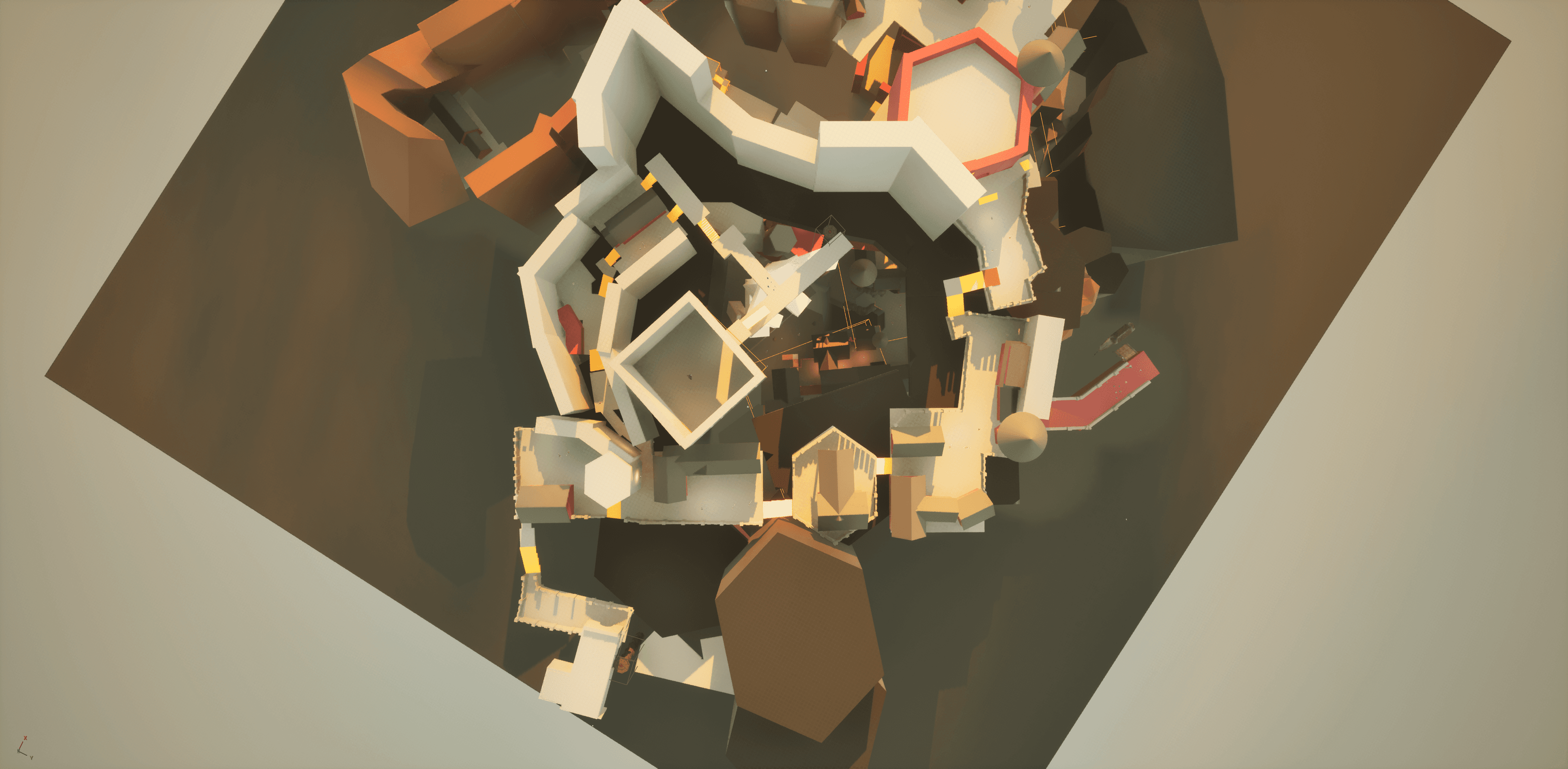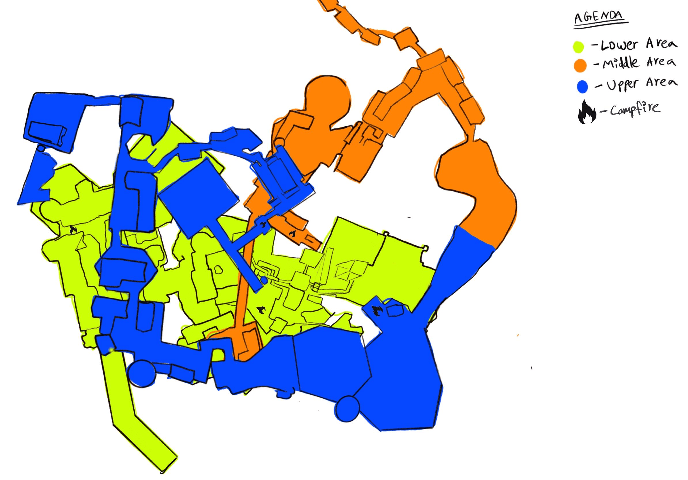 One thing I love about Soulslike levels is how everything loops back into itself. You take a new path and suddenly you’re standing above an area you visited 20 minutes ago. To bring that feeling into my own level, I started by roughly sketching the main flow, then kept adding connections wherever it made sense. Little shortcuts, side routes, and overlaps slowly built up that familiar Soulslike layout where the world feels tight, intentional, and fun to navigate.