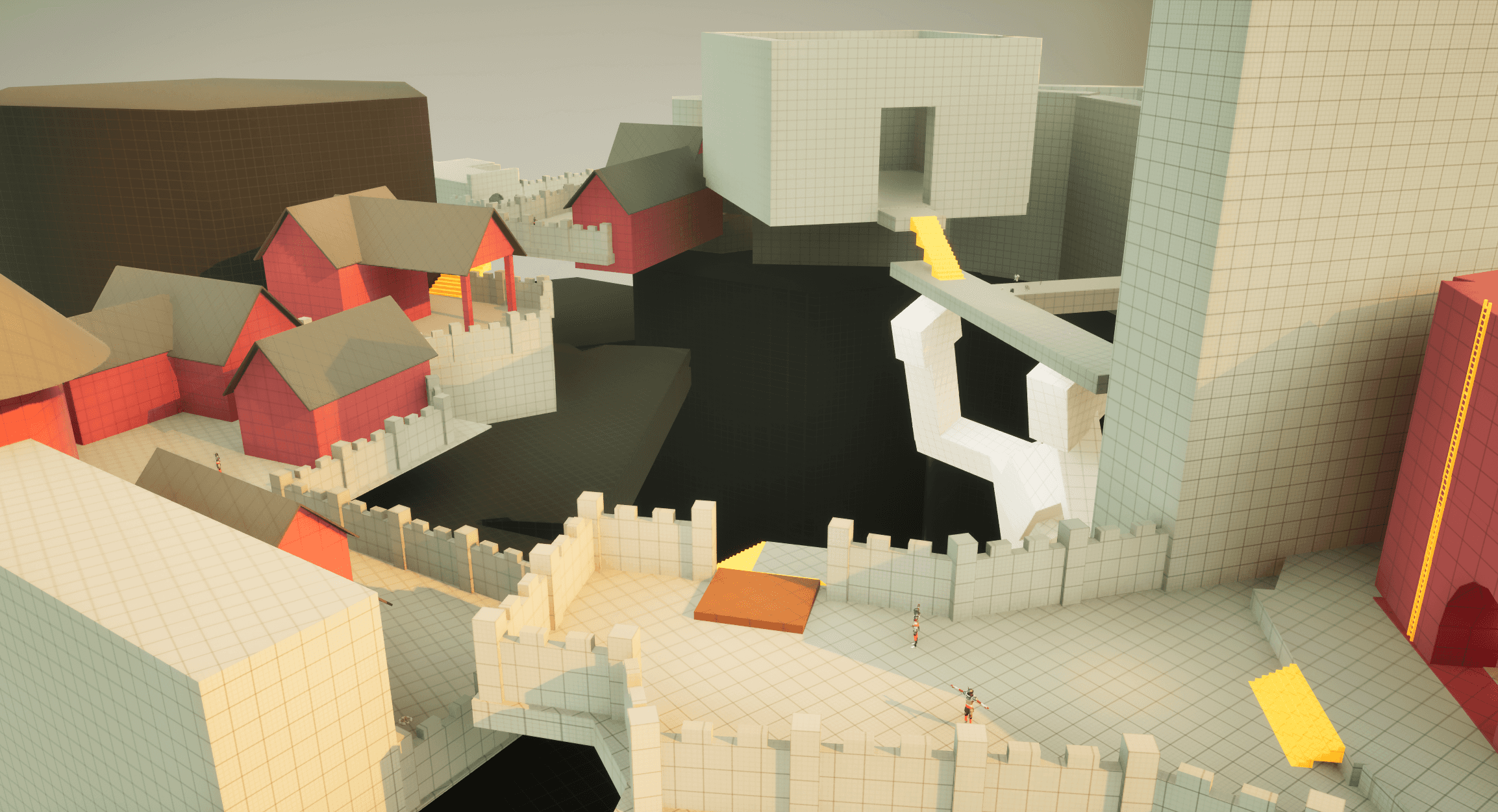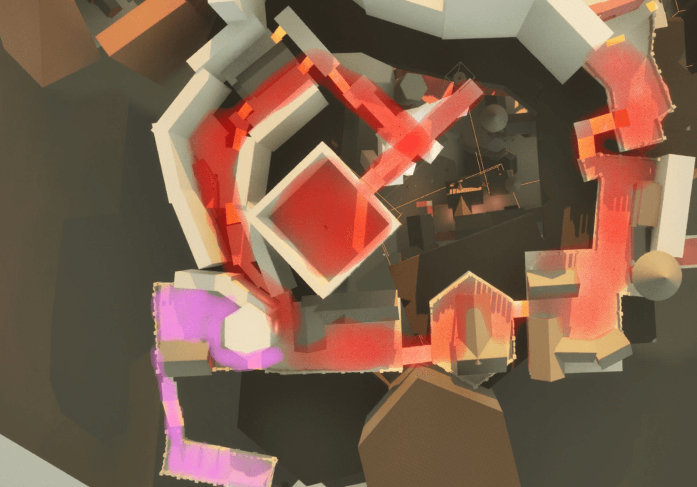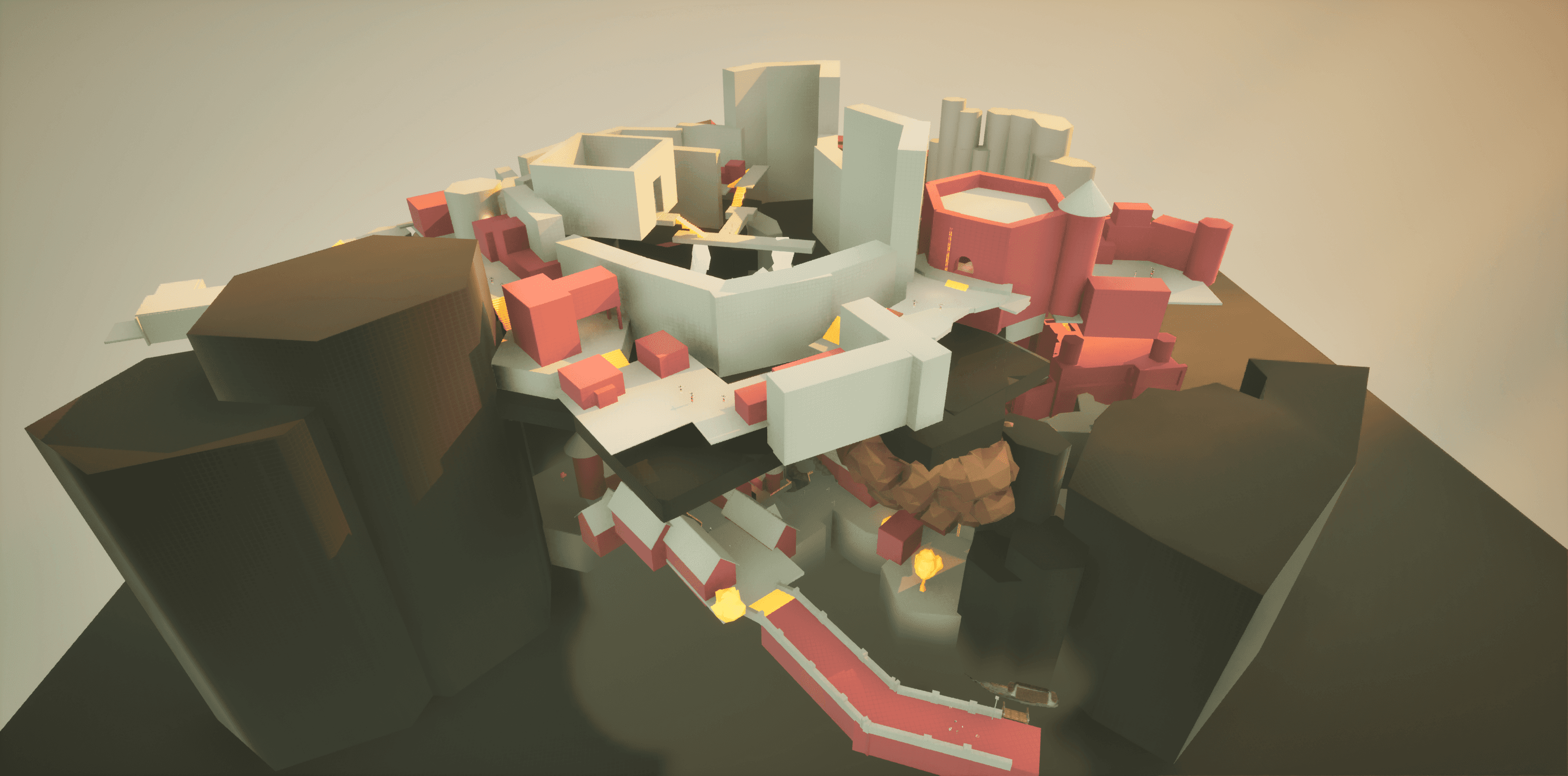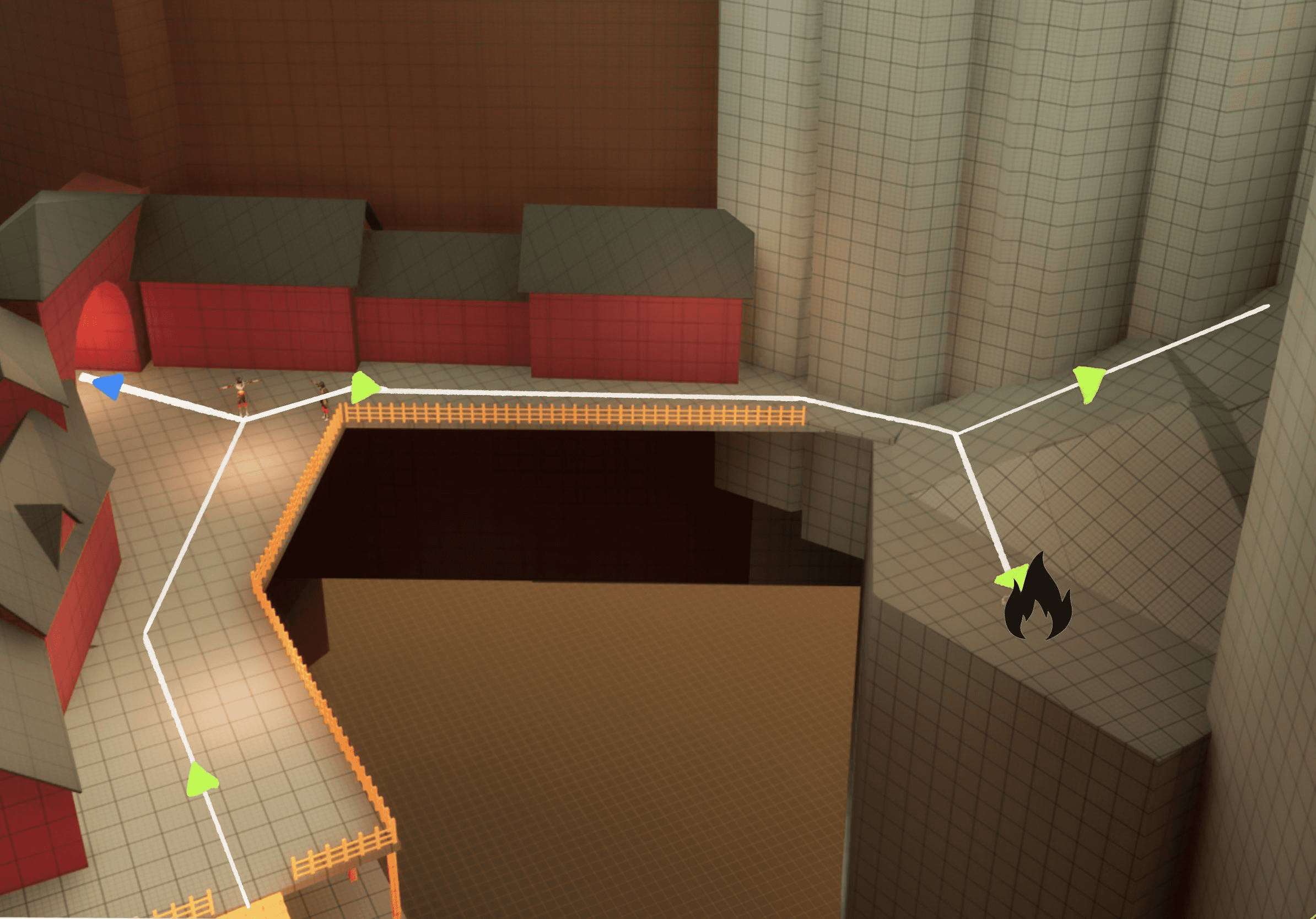 One thing I love about Soulslike levels is how everything loops back into itself. You take a new path and suddenly you’re standing above an area you visited 20 minutes ago. To bring that feeling into my own level, I started by roughly sketching the main flow, then kept adding connections wherever it made sense. Little shortcuts, side routes, and overlaps slowly built up that familiar Soulslike layout where the world feels tight, intentional, and fun to navigate.